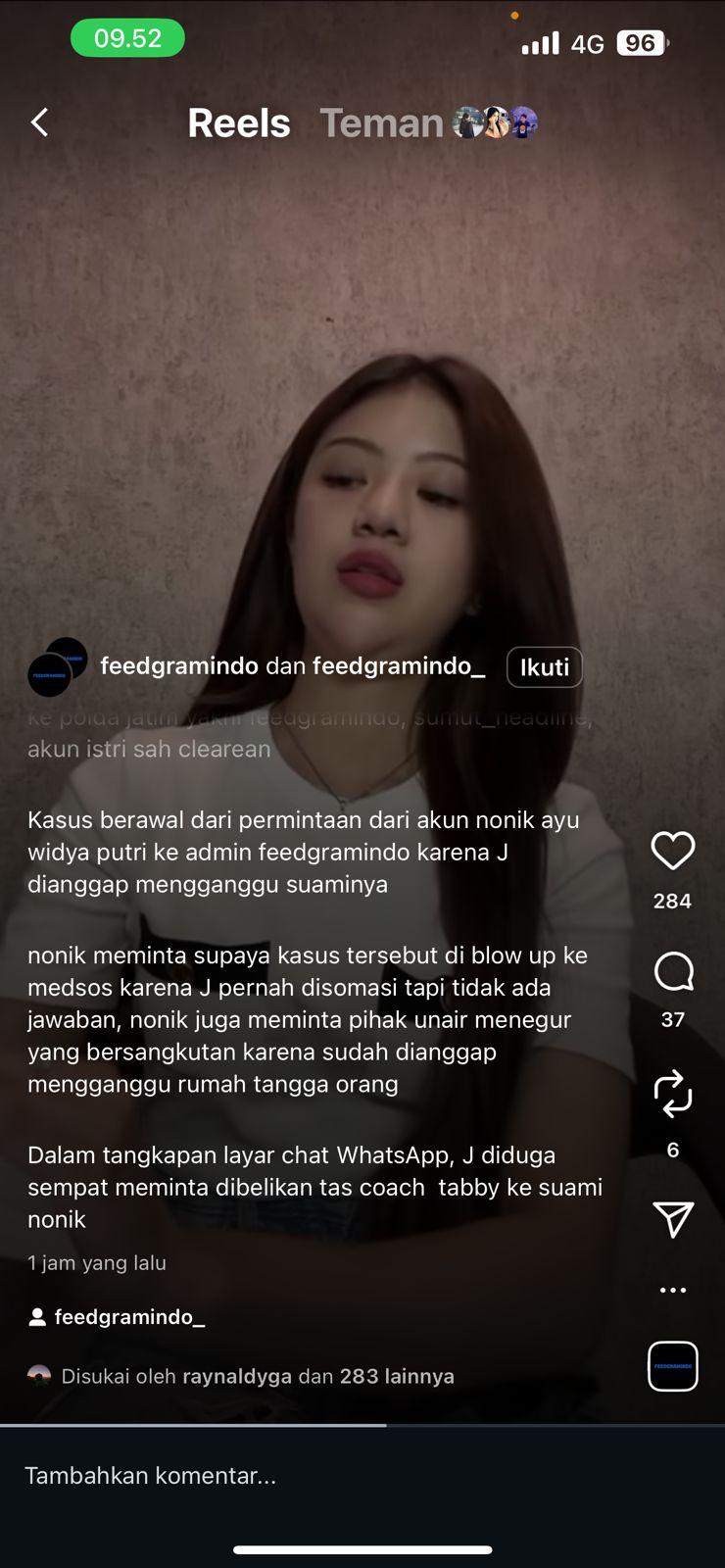 “Nonik meminta supaya kasus tersebut di-blow up di media sosial, karena J pernah disomasi namun tidak ada jawaban. Nonik juga meminta pihak Unair menegur yang bersangkutan karena dianggap sudah mengganggu rumah tangga orang,” tulis akun @feedgramindo.